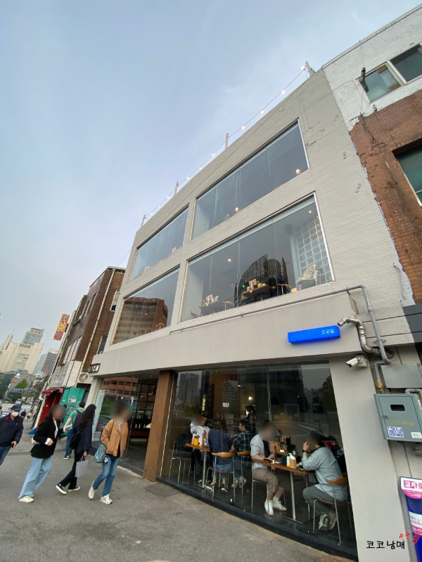 오공일 위치로 가보니까 건물 하나를 통으로 사용하고 있더라고요. 각 층마다 통창이 나 있어서, 뻥 뚫린 시티뷰(?)를 볼 수도 있겠다고 느꼈어요.