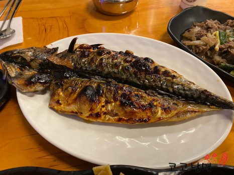 얼마 지나지 않아서 고등어구이와 소불고기가 나왔다. 와... 이 때깔 ㅠㅠ 그래 이거지. 집에서는 먹을 수 없는 생선구이 비주얼이다.