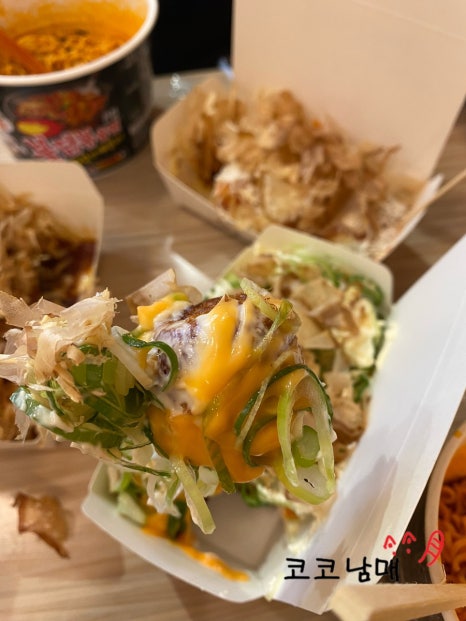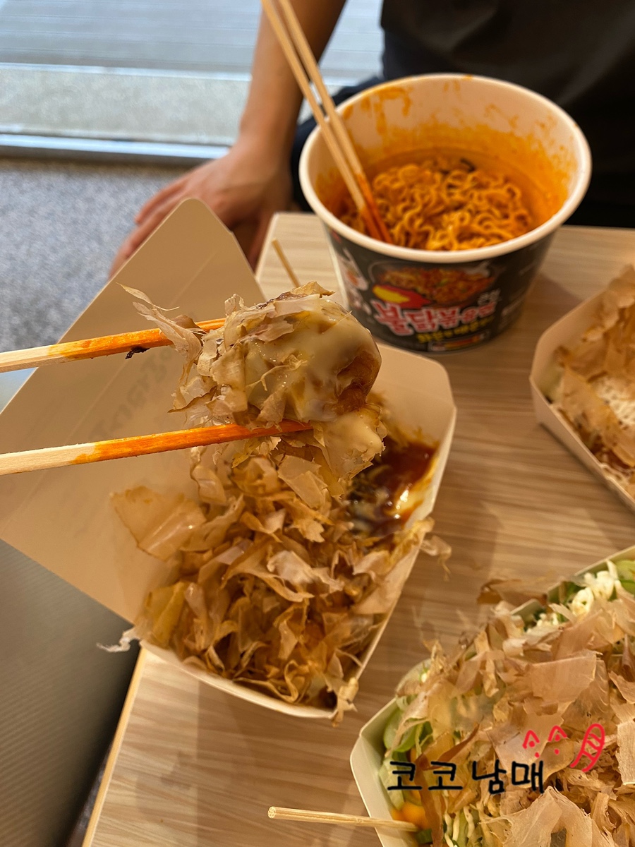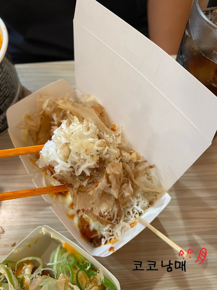 냉동 타코야끼를 쓰는 것이 아니라 속재료부터 반죽까지 수제로 만들어서 그런지 만족스러운 한 입이었습니다.